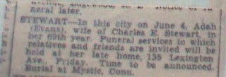 | Death notice for Adah Evans Stewart, 1934, probably The Providence (RI) Journal |
